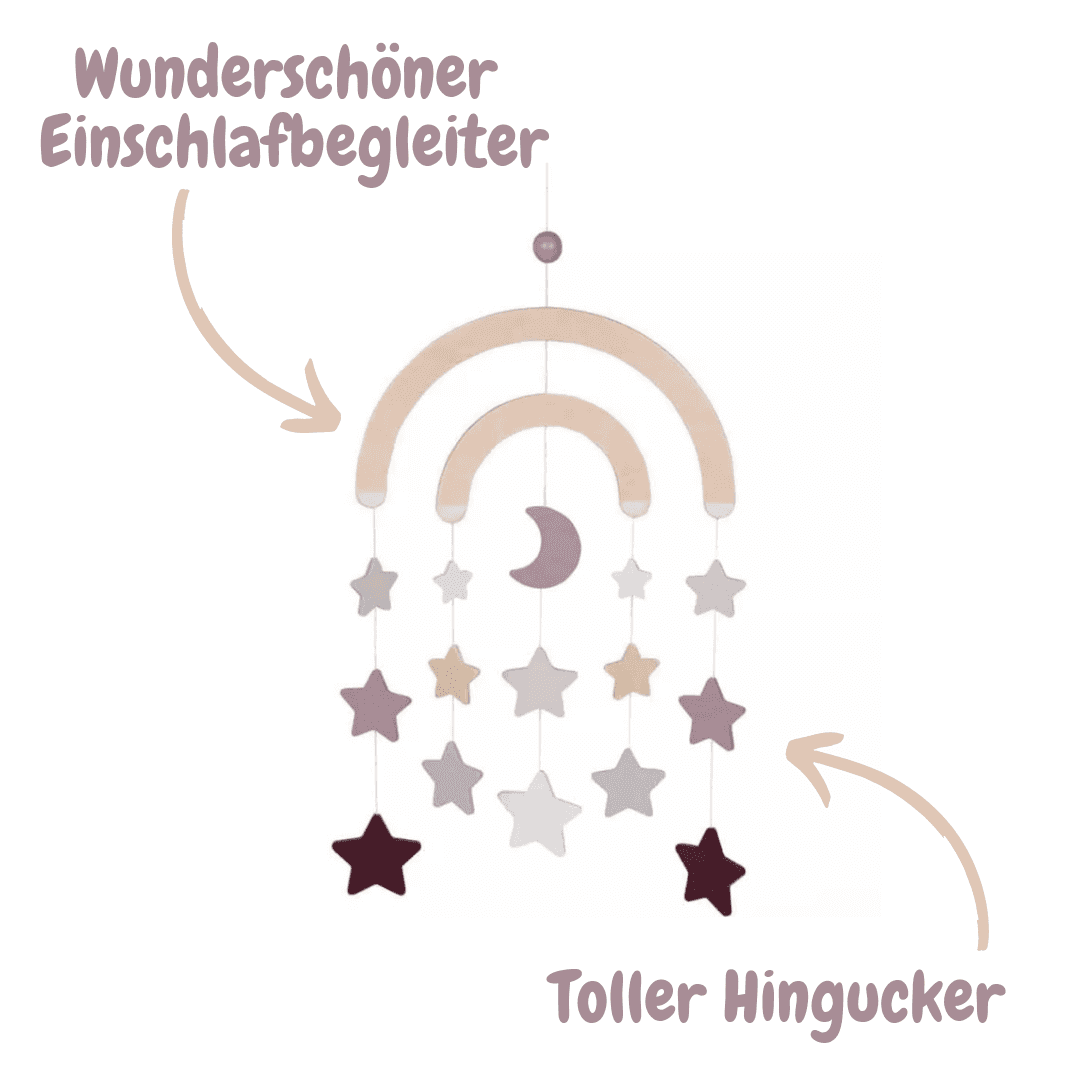 - Visuelle Stimulation: Die liebevoll gestalteten Figuren dieses Mobiles fesseln die Aufmerksamkeit deines Babys und regen seine Sinne an. Es kann die verschiedenen Formen und Farben bestaunen und sich in die Welt der Sterne und des Mondes hineinträumen.