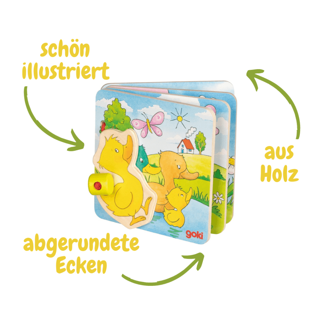 - Sinneserlebnis: Das Holzbuch lädt dazu ein, die Geschichten mit allen Sinnen zu erleben. Dein Baby kann die Seiten anfassen, die verschiedenen Texturen des Holzes spüren und die Bilder betrachten. Es fördert die sensorische Wahrnehmung und die Neugierde deines Babys.