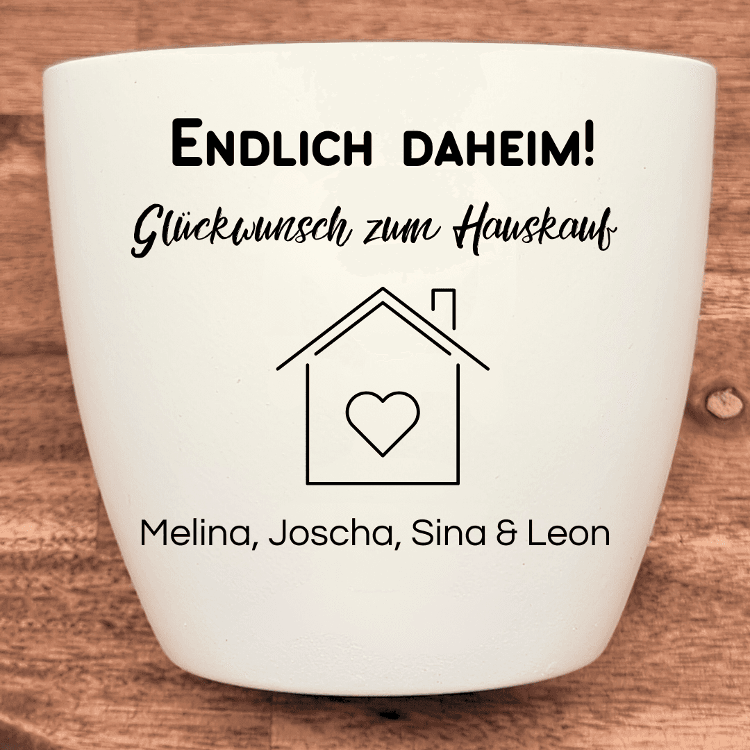 Geschenk zum Einzug - Blumentopf graviert - Endlich daheim