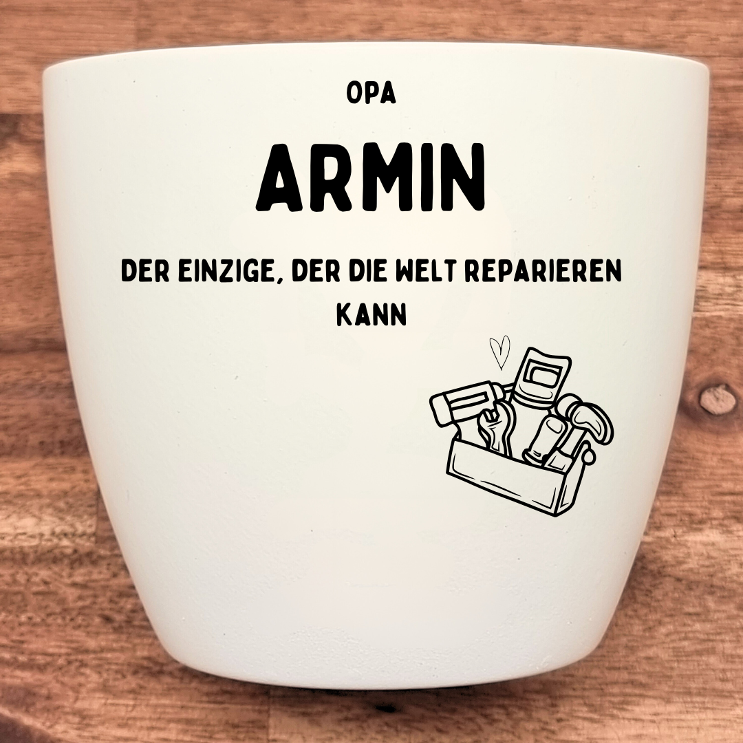 Familiengeschenk - Blumentopf graviert - Opa kann die Welt reparieren