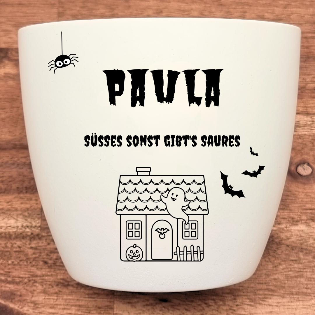 Es ist Halloween! 🎃 Der perfekte Moment für Gruselspaß und leckere Überraschungen. Mit diesem gravierten Blumentopf wird das „Süßes, sonst gibt's Saures" zum festlichen Hingucker in jedem Haus.