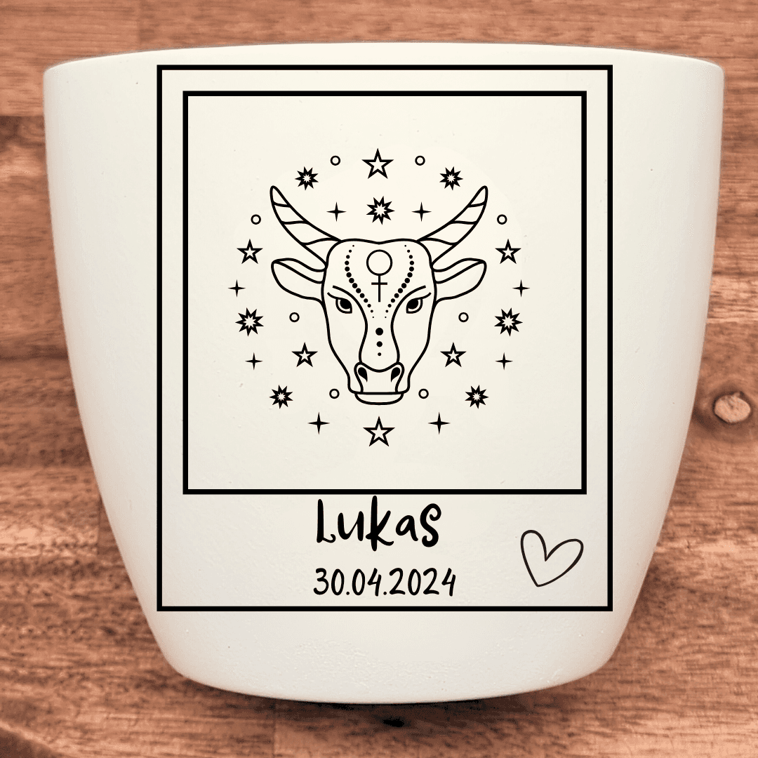 Besonderes Geschenk - Blumentopf graviert - Sternzeichen Stier