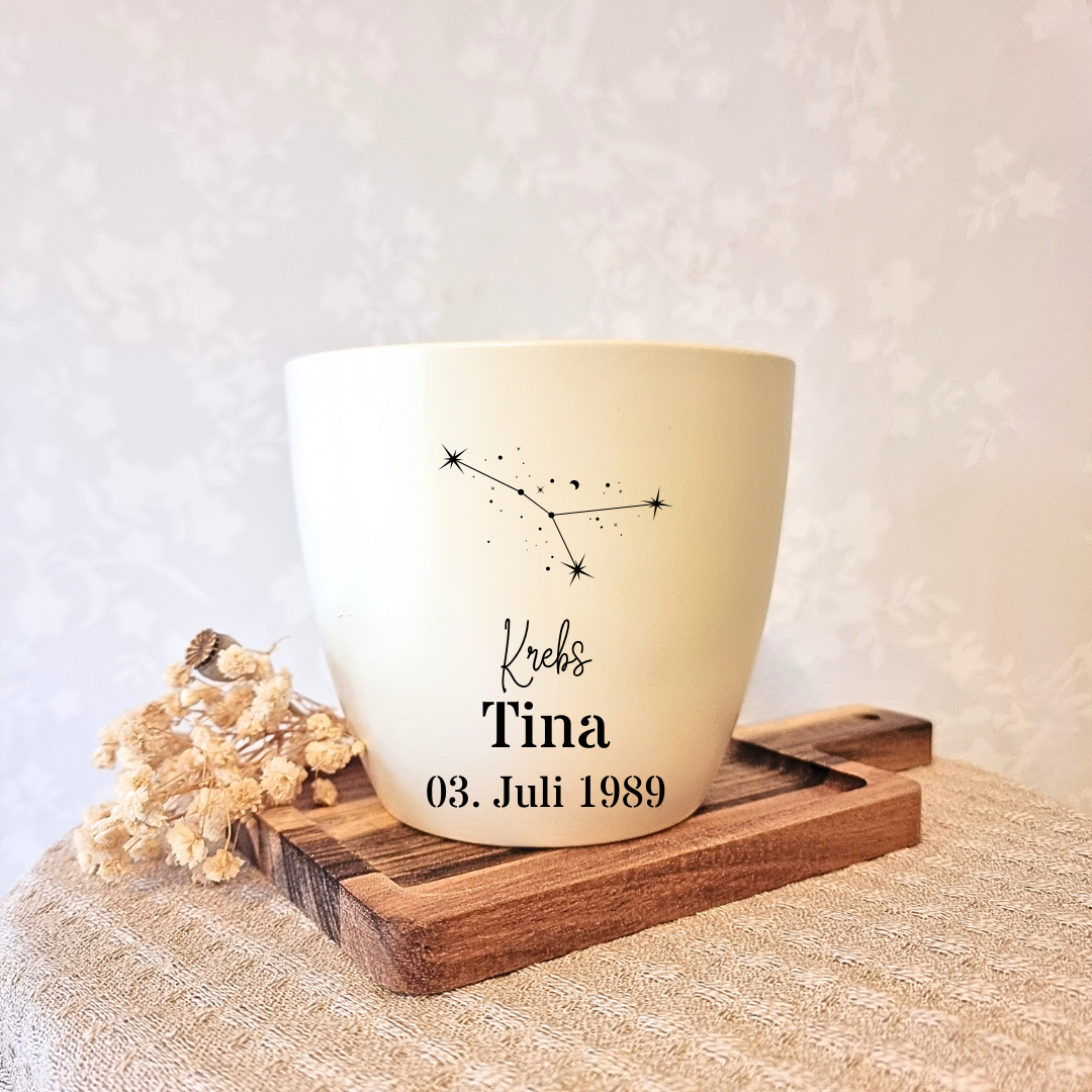 Besonderes Geschenk - Blumentopf graviert - Sternbild Krebs
