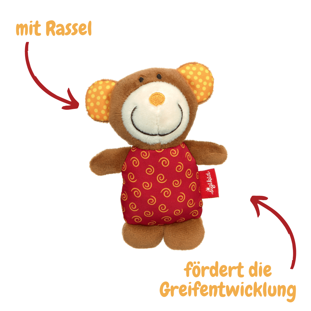 Dieser süße kleine Bär mit integrierter Rassel ist perfekt für dich, um deine Greifentwicklung zu fördern. Hier sind einige Vorteile und Merkmale des Produktes: