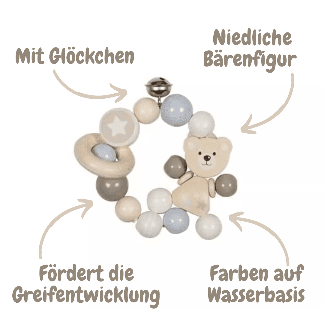 Entdecke mit dem Holz-Greifling und der niedlichen Bärenfigur gemeinsam mit deinem Baby die Welt! Dieser Greifling bietet viele Vorteile und Merkmale, die dich begeistern werden. Hier sind die Highlights: