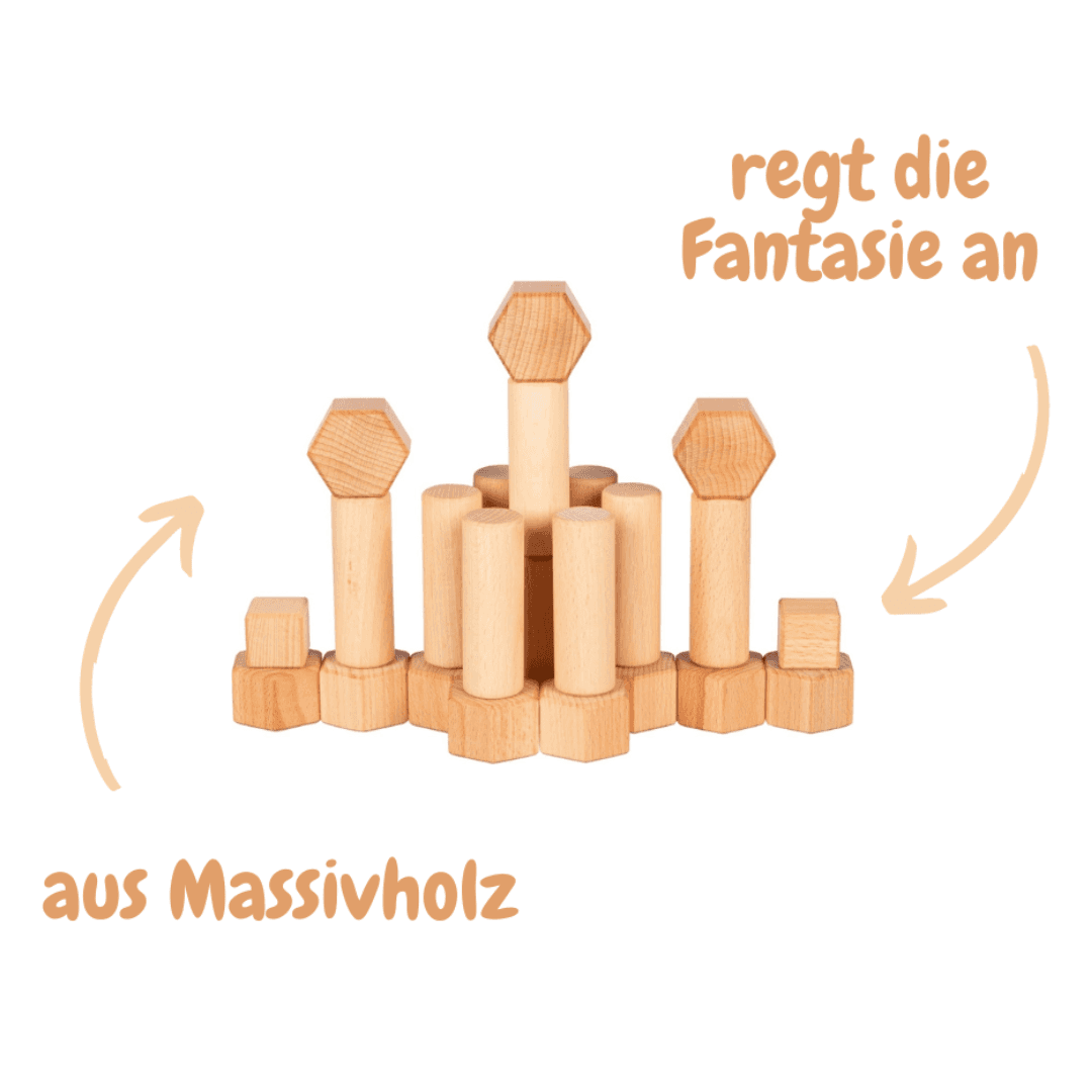 - Hochwertige Verarbeitung: Unsere Bausteine bestehen aus hochwertigem Massivholz und sind mit Walnussöl veredelt. Dadurch erhalten sie eine glatte Oberfläche und ein angenehmes haptisches Erlebnis. Die natürlichen Materialien sorgen zudem für eine nachhaltige Spielumgebung.