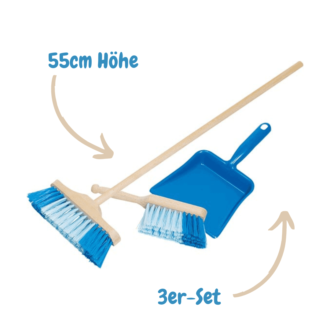 handliche Kinderkehrschaufel, Handfeger und Besen von Goki (3er-Set)