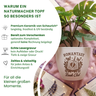 Dark Romance Bookie-Blumentopf – Für Book Lover, Leseecke & Bücherregal, Cozy & Mystisch