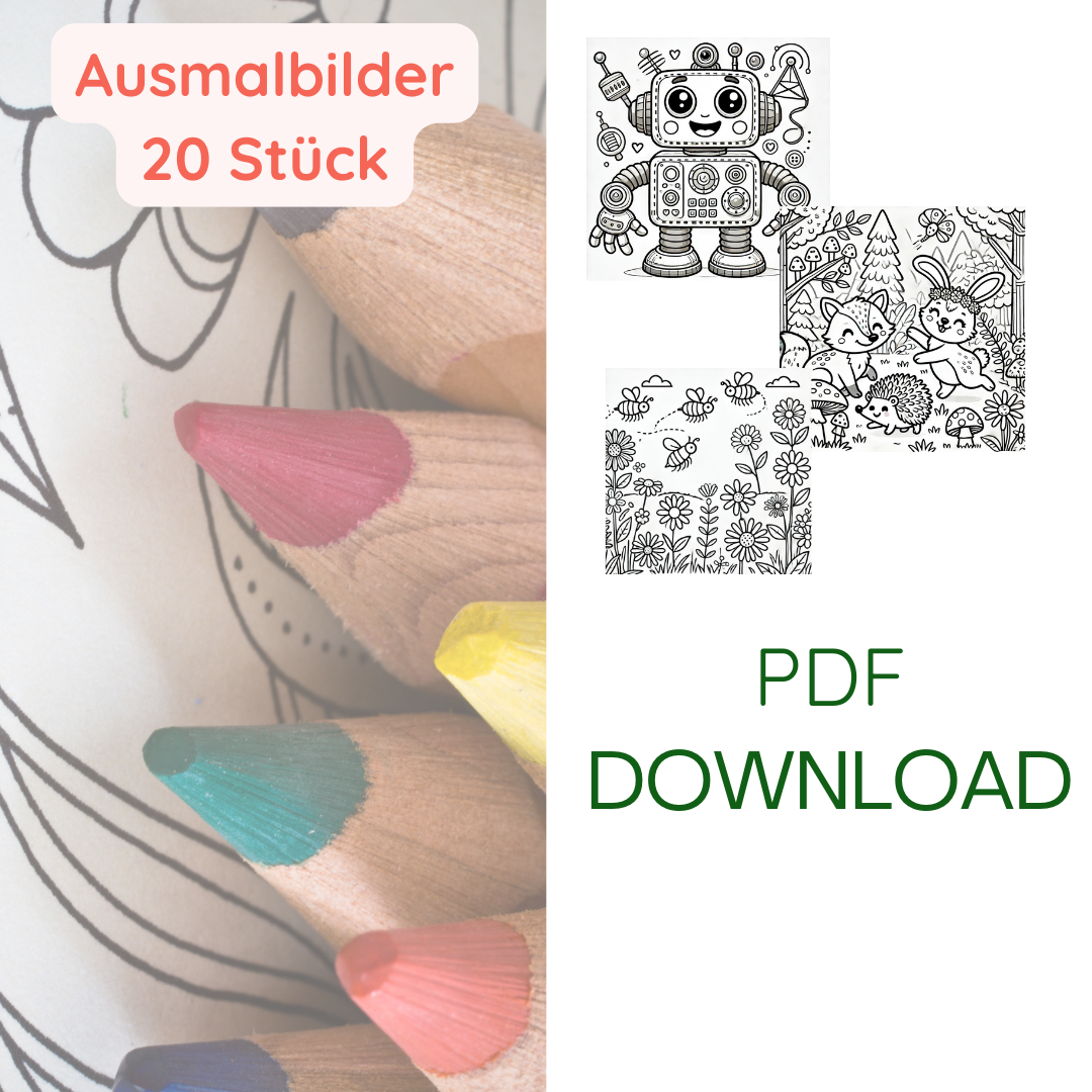 Unser Malbuch ist digital – du kannst es beliebig oft ausdrucken und so oft ausmalen, wie du möchtest. Ganz ohne Plastik, nachhaltig und flexibel!
