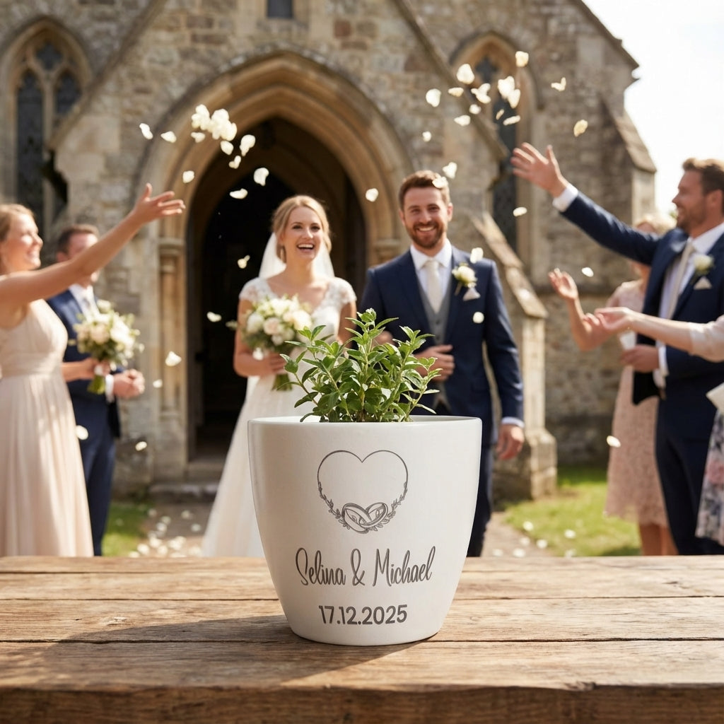 Personalisierter Blumentopf zur Hochzeit – stilvoll & bedeutungsvoll