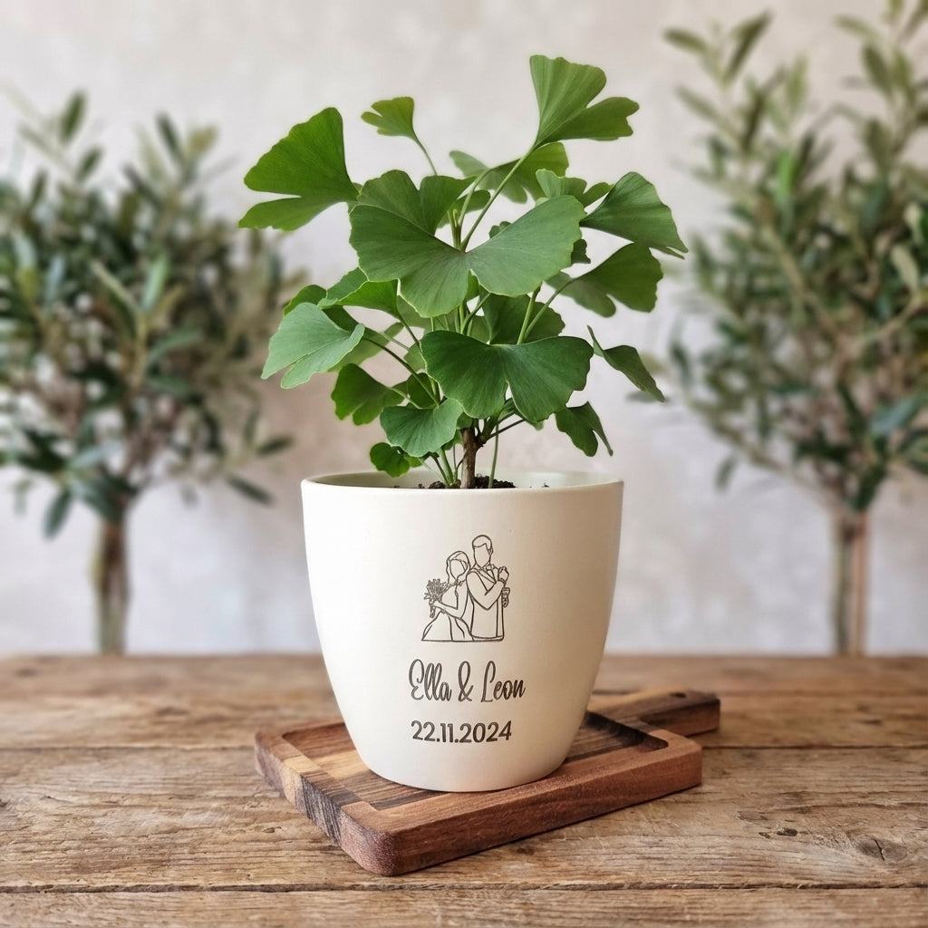 Du suchst ein Hochzeitsgeschenk mit Gravur, das persönlich, langlebig und nachhaltig ist? Unser personalisierter Blumentopf ist die moderne Alternative zum Blumenstrauß – ein Geschenk, das bleibt. 💍