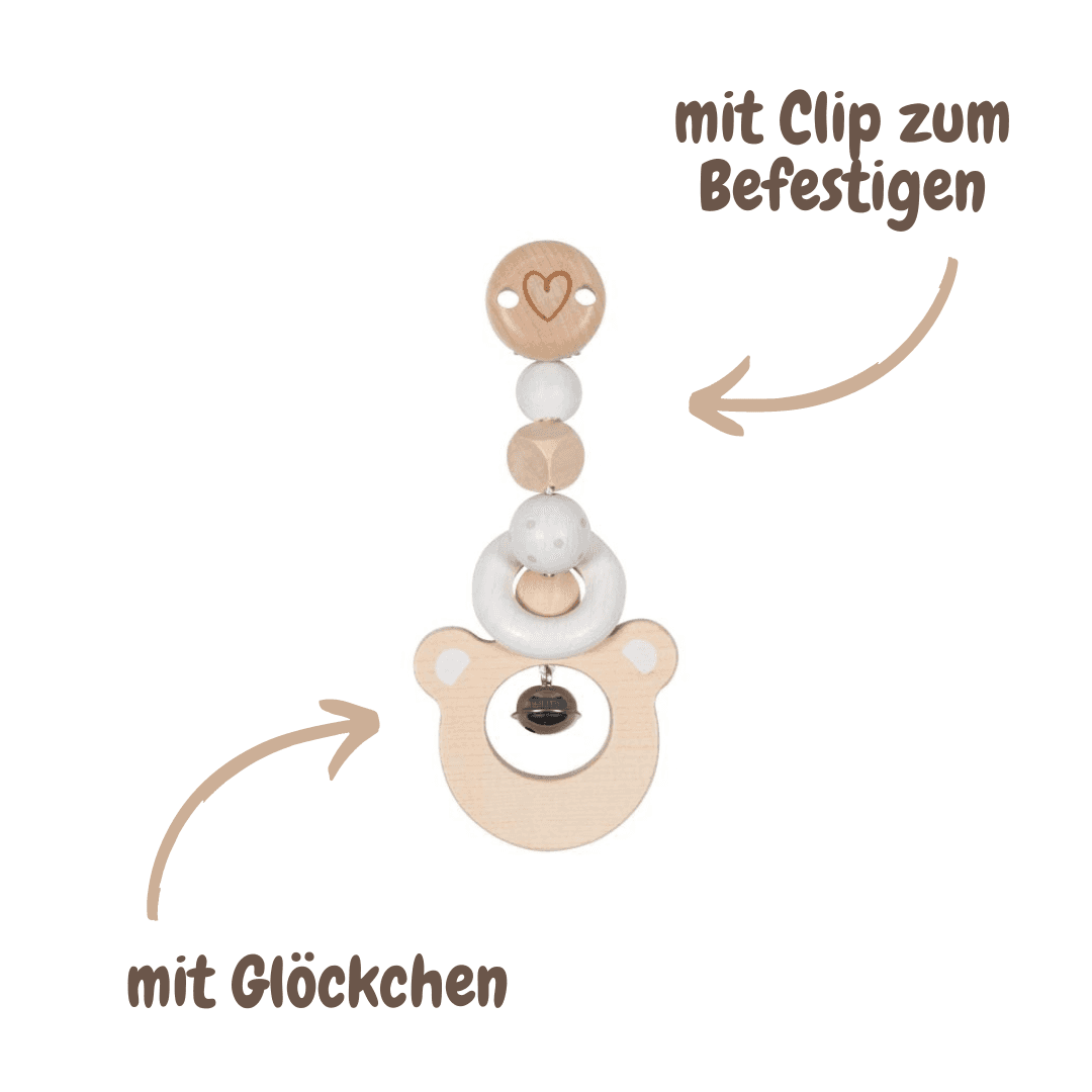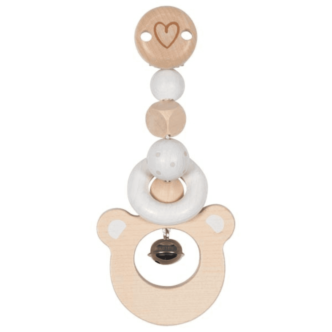 Entdecke unsere goki-Baby-Serie, die höchsten Ansprüchen gerecht wird: Die liebevoll gestaltete Clipfigur aus Holz mit niedlichem Bärenkopf kann an Babybett, Kinderwagen oder Babyschale befestigt werden. 🧸