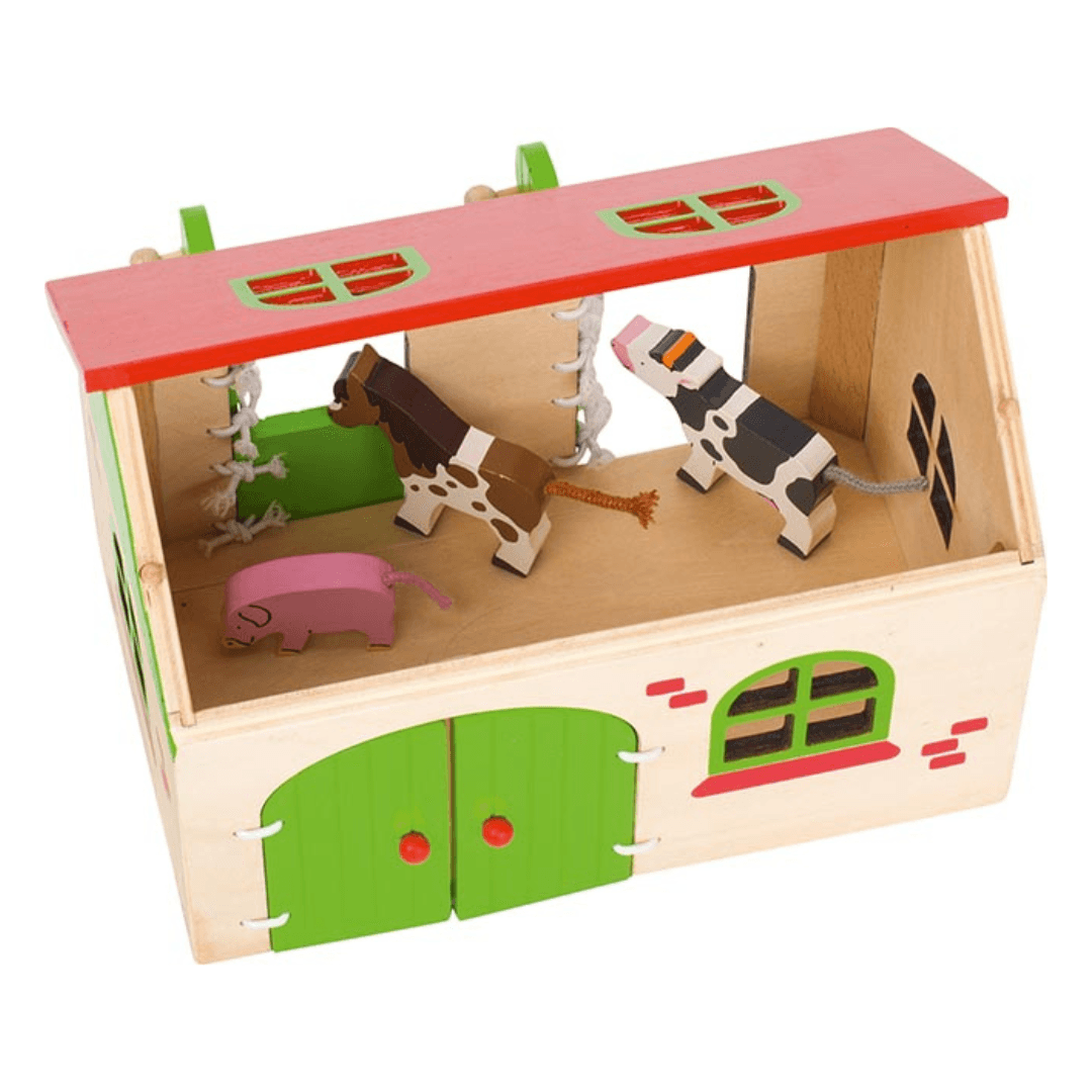 - Kompakte Größe: Mit den Maßen von 19,5 cm x 13,4 cm x 14,5 cm ist der Stall handlich und ideal für kleine Hände, sodass das Spielzeug bequem transportiert und überallhin mitgenommen werden kann.